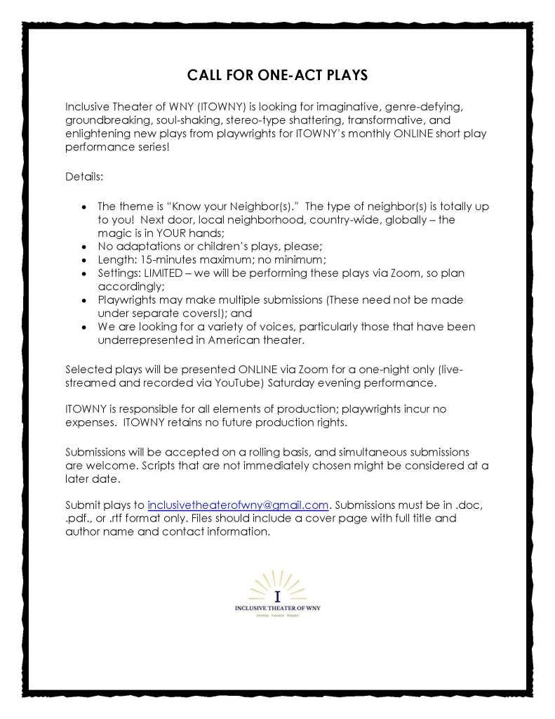 Questions? More Info? Submissions? inclusivetheaterofwny@gmail.com.